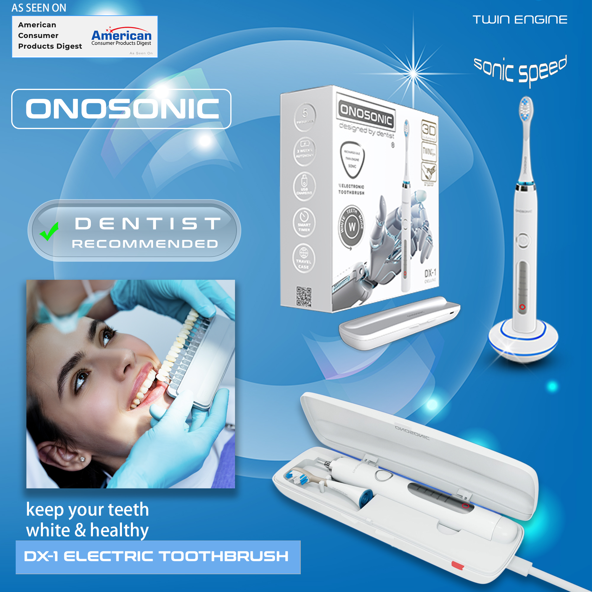 ОБНОВИТЕ СВОЙ ЗУБНОЙ РЯД С ПОМОЩЬЮ УДИВИТЕЛЬНОЙ ЭЛЕКТРИЧЕСКОЙ ЗУБНОЙ ЩЕТКИ ONOSONIC DX-1!